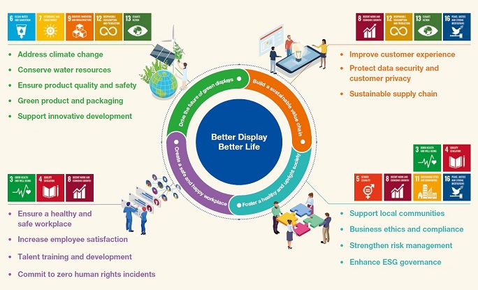 In 2024, the global economic landscape undergoes profound transformations, where technological innovation and industrial transformation are intertwined. Amid escalating climate crises and geopolitical tensions, the transition to a green, low-carbon future has emerged as the central imperative for businesses committed to sustainable growth. Facing with a complex macroeconomic environment, TPV remains steadfast in our commitment to the vision of "Better Display, Better Life", guided by our "ESG Roadmap to 2030". With unwavering dedication, we are determined to fulfill our solemn commitments to international organizations and initiatives such as the United Nations Global Compact, Responsible Business Alliance, and Science Based Targets initiative. We firmly believe that only through purposeful action can we address the challenges of our time, unlock new opportunities in times of change, and advance steadily along the path of high-quality development.